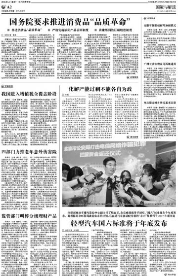 国务院要求推进消费品“品质革命”