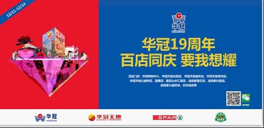 本报讯 (记者 胡锋刚) 2014年12月11日-12月14日,为了回馈广大新老顾客,华冠集团隆重推出“百店同庆·要我想耀”19周年庆典活动:华冠超市低至1.2折、华冠百货击破2.9折,华冠黄金更是打破全国黄金的最低价225元/克售卖。活动期间,闻讯而来的消费者均惊喜连连,笑颜尽展,乘兴而来,满载而归。