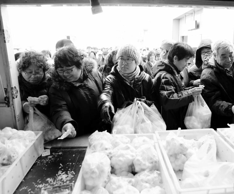 元宵节,北京老字号小吃的元宵销售火爆,市民排队等待购买,厨师在店里加紧加工包装。李慧思 摄
