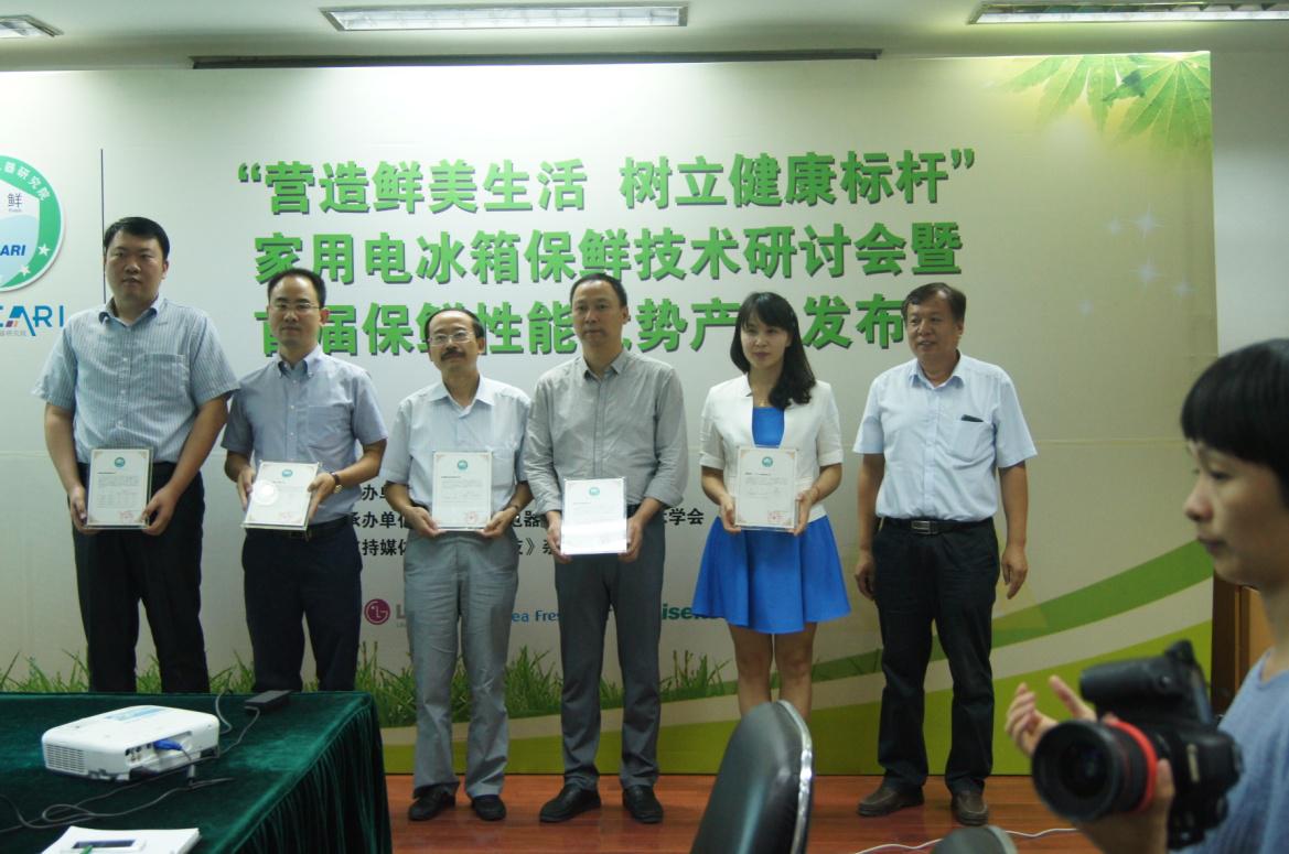 2015年8月20日,由中国家用电器研究院主办,中国家用电器研究院清洁技术学会承办的“家用电冰箱保鲜技术研讨会暨首届保鲜性能优势产品发布会”在北京隆重举行。来自中国家用电器研究院、国家家用电器质量监督检验中心的领导和嘉宾以及几十家主流媒体,共同见证了海尔、LG、美的、新飞、海信五大冰箱品牌主推的11款冷藏冷冻箱卓越的保鲜性能。