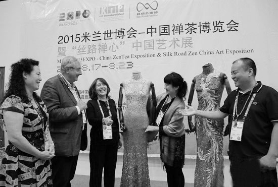 近日,2015米兰世博会kip馆馆长Luciano(左)给来自中国原创的“天衣无缝”蕾丝服装设计团队颁发中国艺术展金奖。