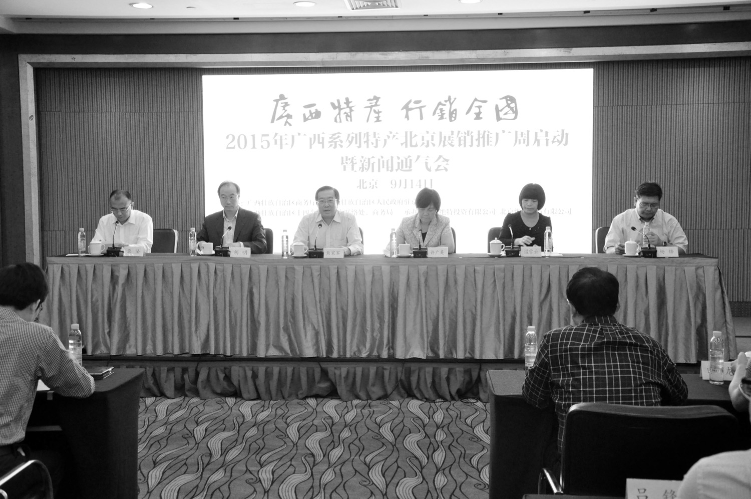 日前, 2015年广西钦州市系列特产宣传推广展销推广周在广西大厦启动,广西商务厅副厅长熊家军出席并做了重要讲话。广西驻京办副主任许广英、国际商报社副社长胡明、钦州市商务局副局长温碧云以及商务厅运行处负责人出席了新闻发布会。