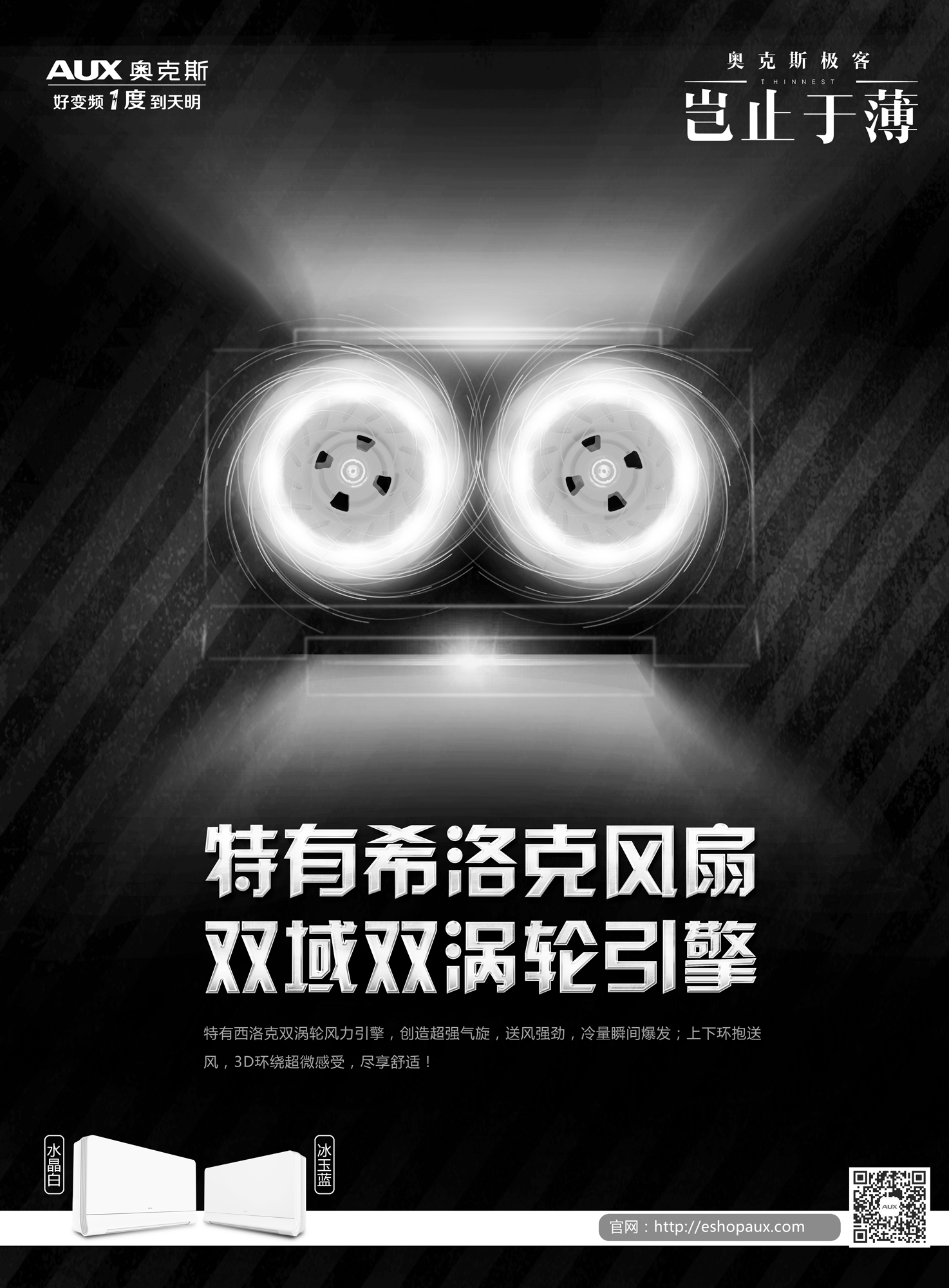 功能特点上,此次的新品极客系列首创了双核双驱涡旋送风技术,采用双风道的挂机形式,完美实现360°上下环绕式立体送风,让奥克斯极客系列更具创新与科技魅力。此外,这项技术还有效地缩短了进风距离,增大进风面积,提高送风量,有效地降低了室内机噪音,从而达到极致静音18分贝,为你营造出宛如呼吸般安静的环境。