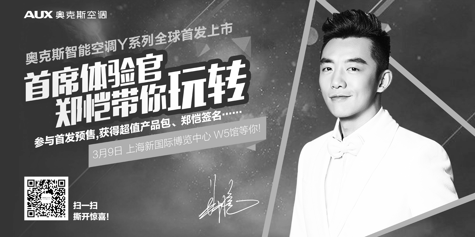 本报讯 (记者 刘俊清) 继独家冠名江苏卫视火爆节目《一站到底》后,奥克斯空调又放出了2016年另一营销大招。记者近日了解到,奥克斯空调将聘请跑男郑恺担任其2016年新品空调——AYA系列的全球首席体验官,并于2016年3月9日现身上海新国际博览中心奥克斯展台。该消息不胫而走,不仅让“国民小猎豹”的粉丝群骚动起来,也使得内业人士对奥克斯“泛代言”模式的产生了极大的关注。