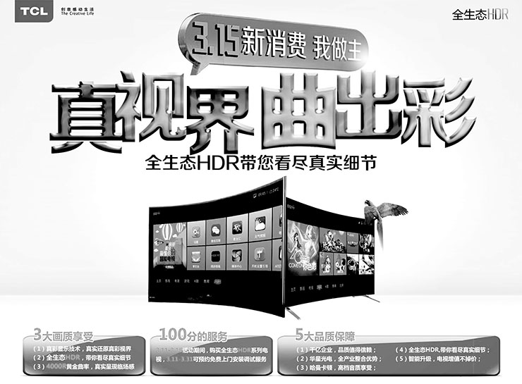 据业内人士认为,多数消费者选择在“3.15”期间购物,是为了更加放心和实惠。而TCL一次性满足消费者对曲面和HDR两大电视潮流的需求,并以价格力证诚意,如此大手笔,纵观行业也是十分罕见,消费者可重点关注,趁机入手心仪的高品质曲面电视。