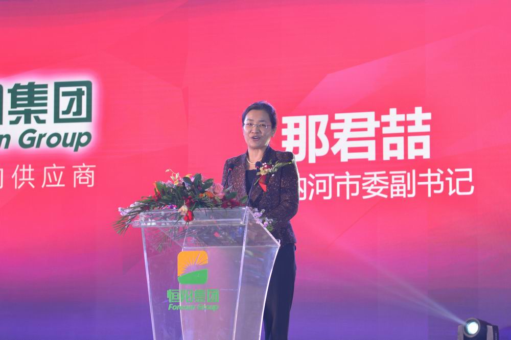 黑龙江省讷河市委副书记那君喆女士、中国肉类协会副会长陈伟先生、鼎晖投资董事总经理李磊先后上台致辞,对恒阳集团近年来取得的成绩表示肯定与赞赏,并对企业更好的向前发展提出了更高的期望与建议。