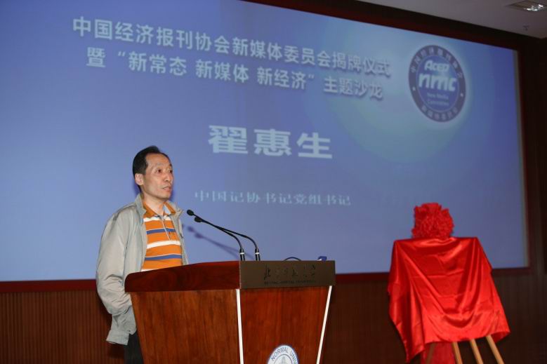 日前,中国经济报刊协会新媒体委员会揭牌仪式暨“新常态、新媒体、新经济”主题沙龙在北京师范大学京师报告厅举行。中国记协党组书记翟惠生、中央网信办网络新闻信息传播局副局长孙凯出席揭牌仪式并讲话。翟惠生书记、孙凯副局长、新华网党委书记齐邵南、北师大新闻传播学院执行院长喻国明、中国经济报刊协会会长莫新元共同为新媒体委员会揭牌。启迪控股、华硕电脑、正略咨询等知名企业受邀成为新媒体委员会首批理事单位。