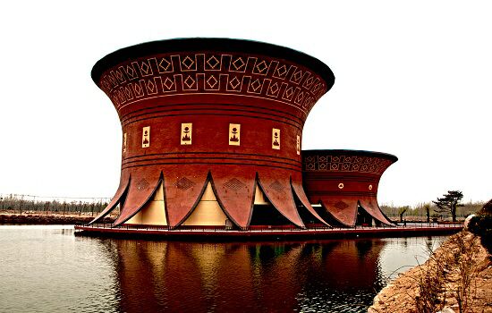 项目建筑高度13米,外形是7个彩陶巨碗(单个碗直径24米),由通过高科技精心打造的文明曙光、太阳崇拜、圣贤时代、华夏统一、华夏雄风、中国梦六个不同主题场景组成,游客乘坐由激流推动的皮划艇观赏不同时期的主题转换,以情景体验的形式带游客亲身感受中国五千年文明发展历程,文明之光最后的主题是中国梦,融合了奥运会、高铁、神舟飞天、未来家庭等科技因素,展现未来中国的美好前景。