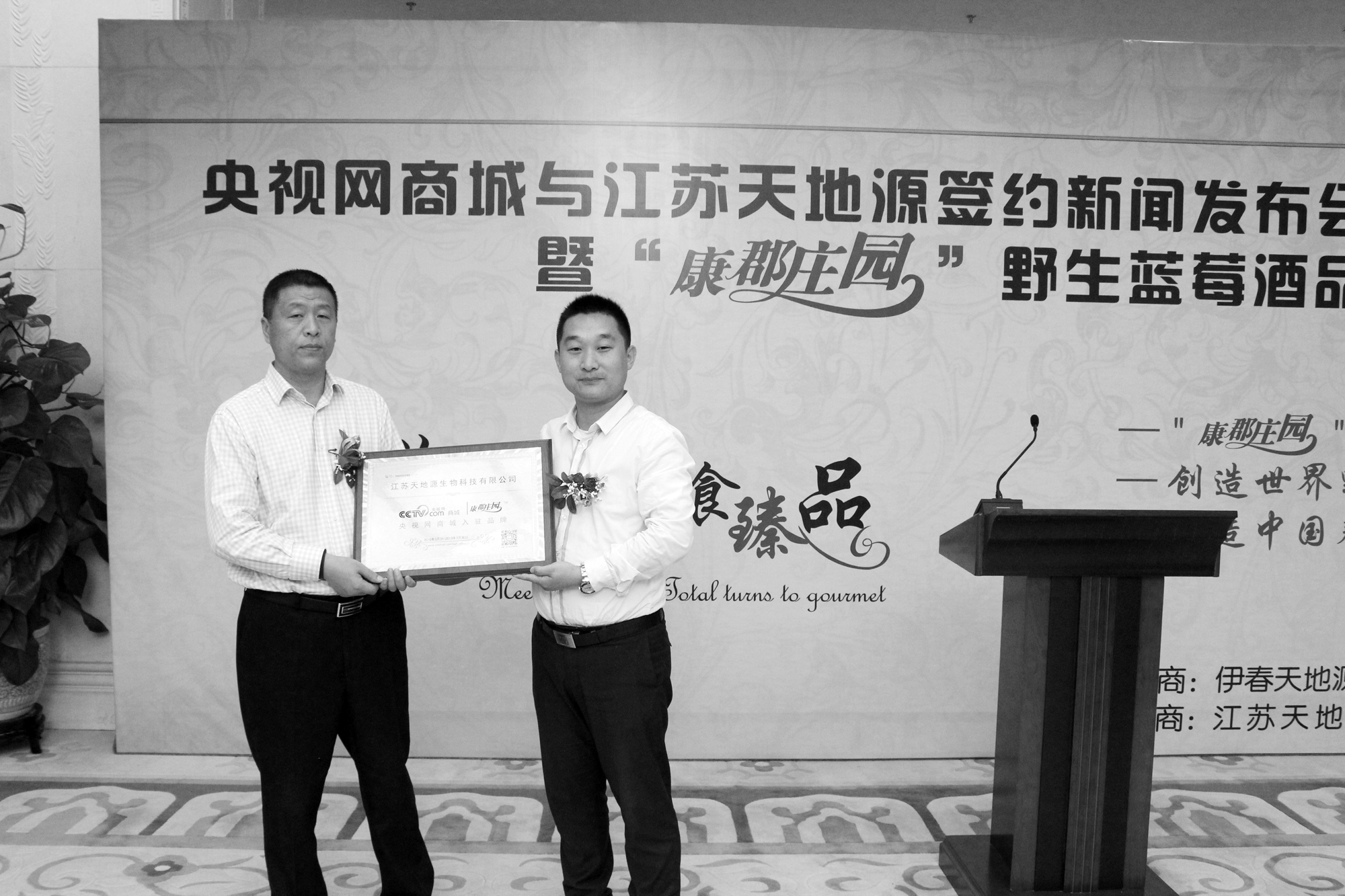 央视网商城与江苏天地源签约新闻发布会暨康郡庄园野生蓝莓酒品鉴会近日在北京瑞安宾馆隆重举行,央视网商城和江苏天地源高层领导、商界代表、企业家及媒体等各界人士共计五十多位嘉宾莅临发布会,举杯欢庆,品鉴美酒,共同见证央视网商城与江苏天地源的签约授牌仪式。