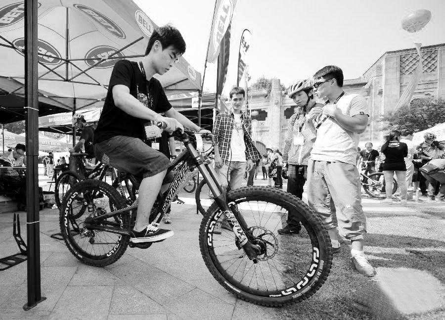 近日,2014亚洲自行车展“体验日”活动在南京钟山运动公园举行,国内外33个品牌的运动自行车整车、18个品牌的自行车装备及零件参展。 孙参 摄
