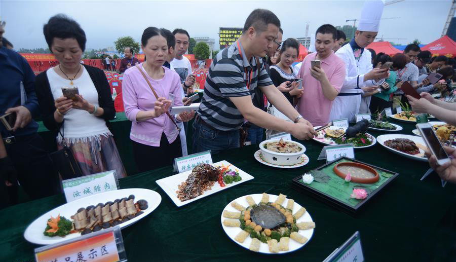 日前,湖南省郴州市汝城县首届美食文化节在该县爱莲广场举行,现场上演了“我是大厨”厨王争霸赛、最大抖糍粑表演等节目。