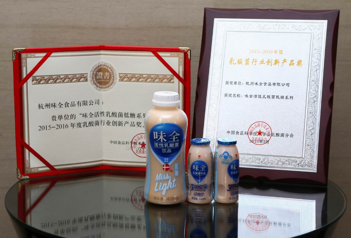 而味全凭借其独有的创新研发能力屡次创造行业认证不止于此:2010年味全首先推出了每100毫升富有300亿活菌的乳酸菌产品;2014年率先推出低糖版乳酸菌饮品,并于今年3月升级低糖技术,将其同规格产品的糖分减少了50%,创新添加从草本植物甜叶菊中精心提取的天然甜菊糖,开启行业“轻糖主义”,全新升级后的味全低糖活性乳酸菌系列在今年乳酸菌与国际研讨会中还获得了2015-2016年度乳酸菌行业创新产品奖。