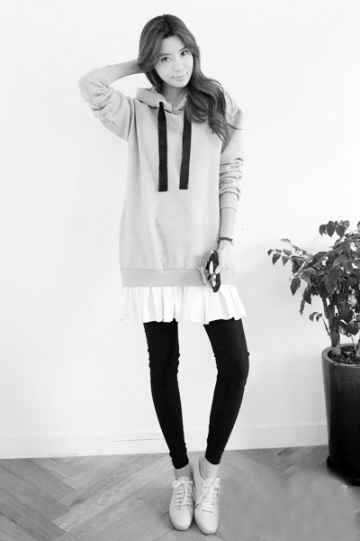近期,运动风格服饰大热,舒适休闲的卫衣更是得到不少女生的欢心。简单时髦,出门时候也便利清爽。快来跟韩国时尚达人学学如何搭配卫衣+短裙,体现不一样的时尚感觉。赵春晓 摄