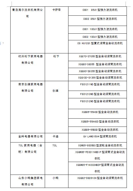 附1:2016年洗衣机、洗衣干衣机A+认证获证产品(排名不分先后)