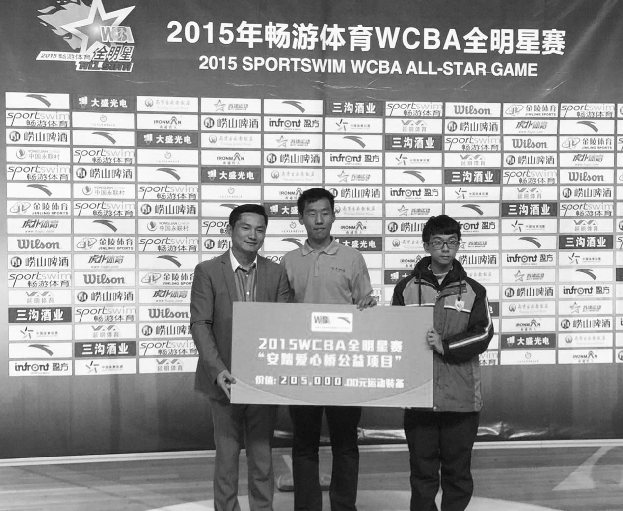 安踏公司在赛前承诺,在本场比赛中,女篮队员每投中1个三分球,安踏将捐赠5,000元运动装备,而如果有球员扣篮得分,安踏将捐赠20,000元的运动装备。比赛结束后希望小学代表上台接受安踏公司领导捐赠,安踏共向南京聋人学校和百年职校捐出了205000元的公益运动装备。