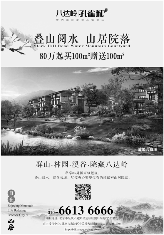 八达岭孔雀城央心臻品即将荣耀绽放。5期山林溪谷,叠山阅水,窗含长城,尽揽央心繁华,仅有的低密山居院落,80万起。臻席待藏,买100平送100平,花园、露台、地下室、车位超值赠送。周边85处国家级景区环绕,人在画中游;享36大私属配套,开启四季自在山居生活。
