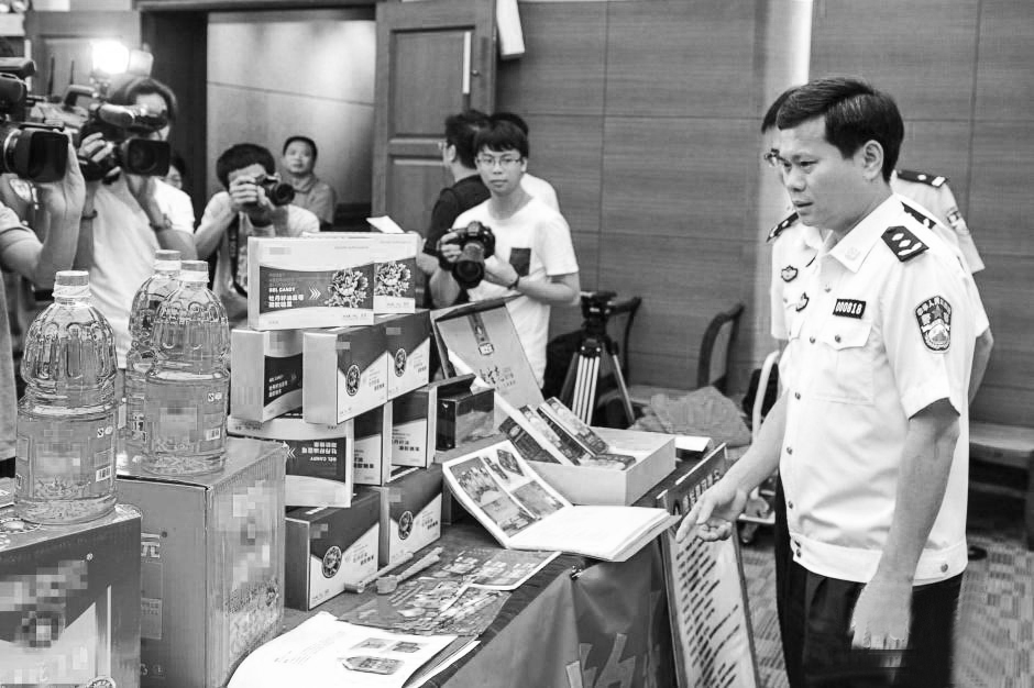 日前,广东省公安厅通报 开展代号为“利剑2号”的收网行动,成功侦破35起非法集资犯罪案件,抓获犯罪嫌疑人281名,涉案金额约40亿元。据统计,1至6月,广东省共破获非法集资案件175起,刑事拘留犯罪嫌疑人561名。图为新闻发布会现场展示的涉案物品。
