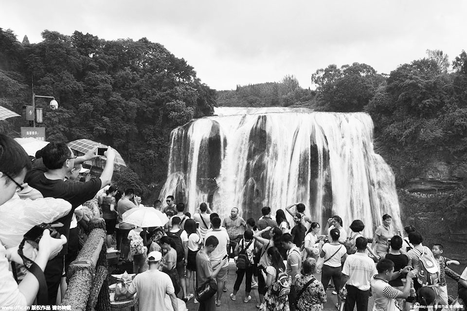 日前,贵州黄果树景区,前来观瀑的游客爆满。进入雨季后,贵州降雨增多,著名的黄果树瀑布在丰水期飞流直下,气势磅礴。壮美的大瀑布下,前来观赏瀑布的游人如织。夏季是贵州的传统旅游旺季,每年进入7月起,贵州即迎来传统旅游旺季,各地游客纷纷涌入贵州避暑纳凉。特别是黄果树大瀑布由于水量充沛,瀑布飞流直下,蔚为壮观,景区游人如织,呈现“人海看瀑布”的壮观景象。 程勇 摄