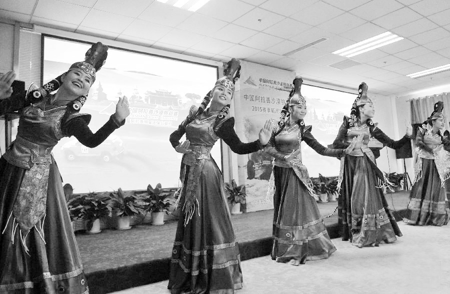 近日,第六届阿拉善文化旅游节新闻发布会在北京举行。据介绍,内蒙古自治区阿拉善盟为促进文化与旅游的深度融合,将于8月至10月间在当地举办主题为“放歌苍天圣地、筑梦一带一路”的系列文化展演活动。鲁鹏 摄
