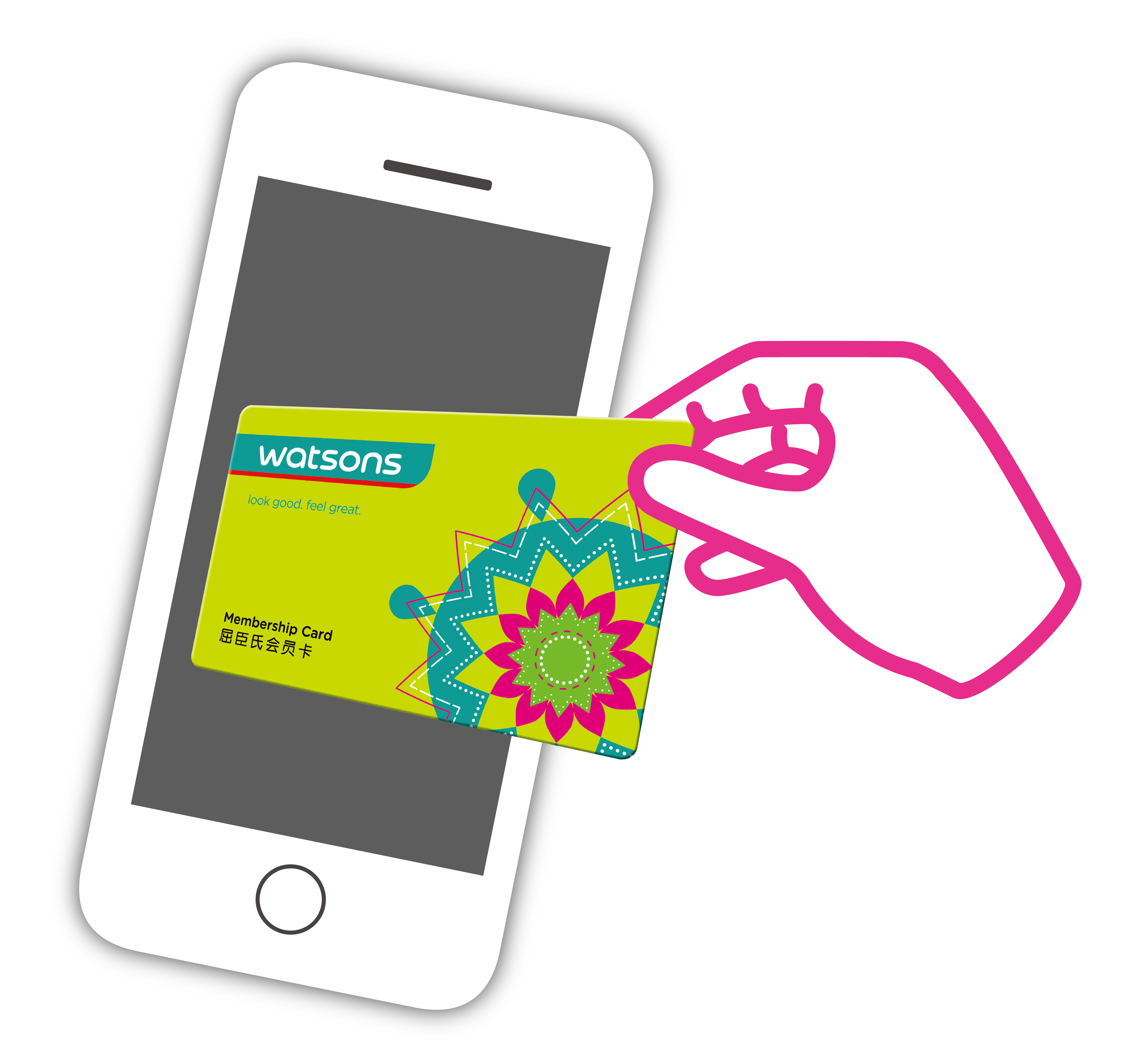 使用者关注“屈臣氏服务助手”公众号,点击“菜单”按钮可领取微信手机版会员卡,并将已有会员卡与微信号绑定。届时,凭借生成的会员卡二维码,可轻松领取或使用积分。