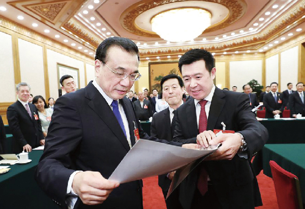 中共中央政治局常委、国务院总理李克强看望出席全国政协十二届五次会议的经济、农业界委员并参加讨论